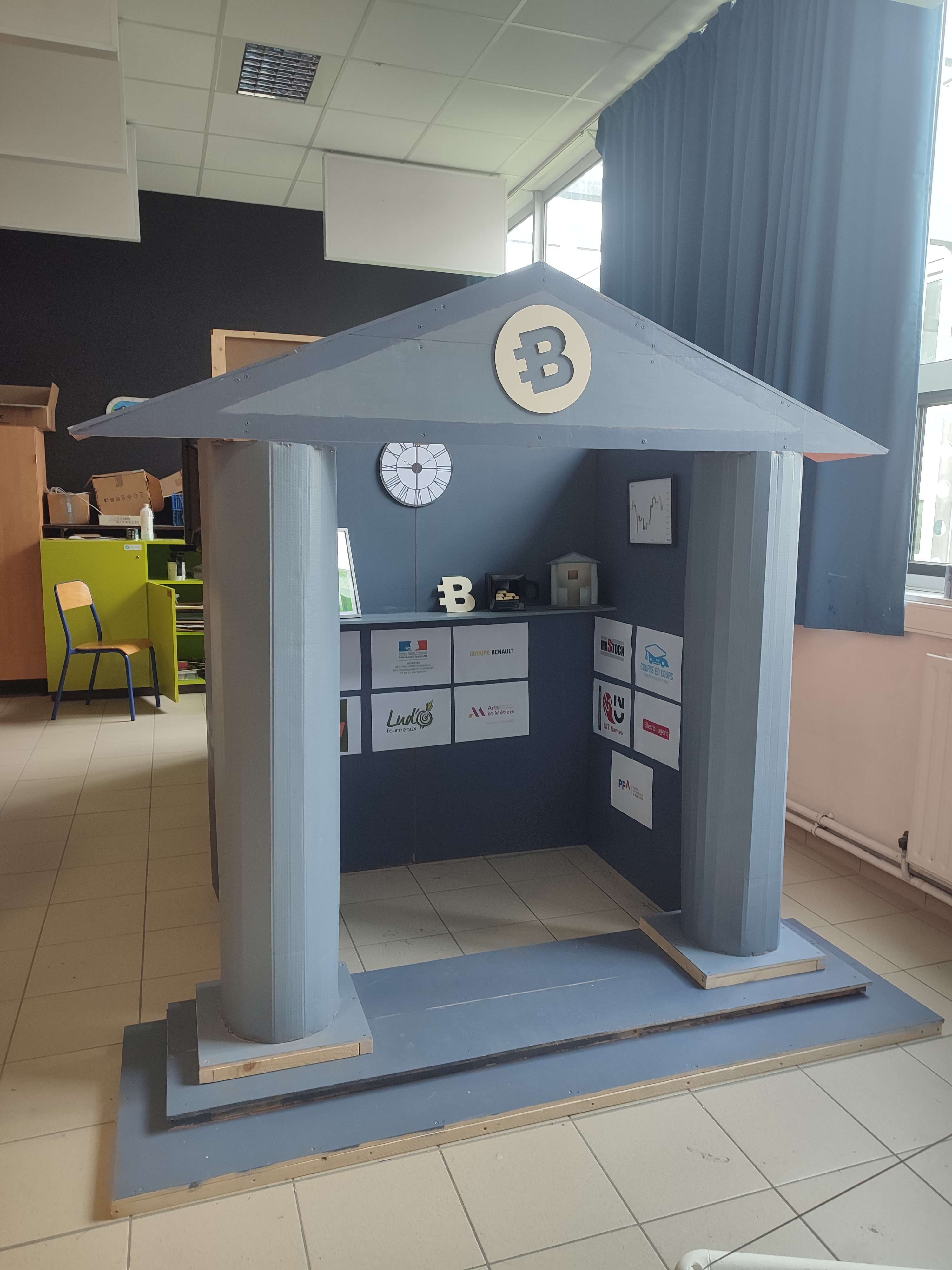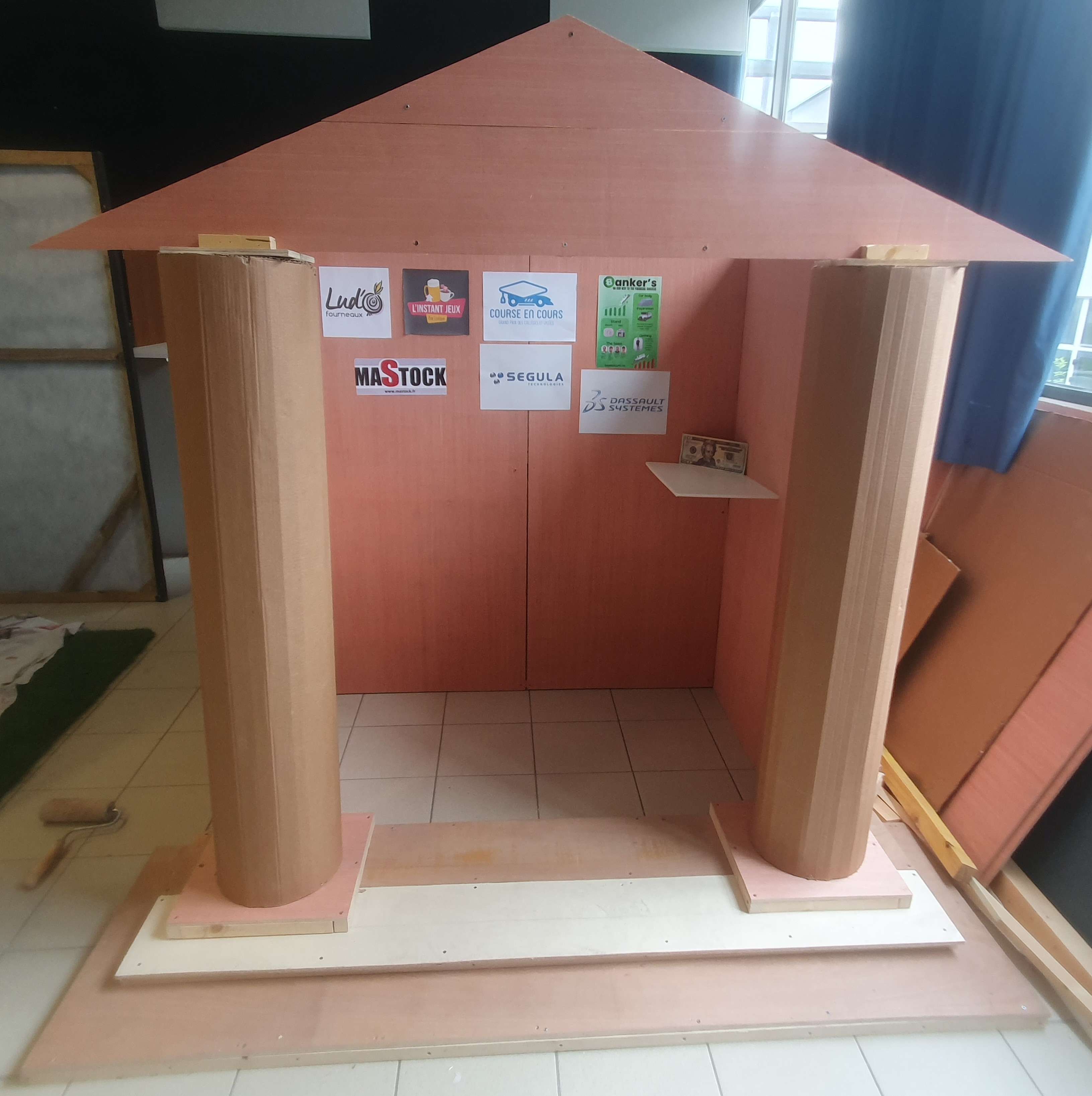 Nous avons fait en sorte d’être un maximum éco-responsable, nos objectifs ont été de limiter au maximum l’impact environnemental du projet, sensibiliser à propos des enjeux climatiques, un stand 100% recyclé et recyclable et d’acheter le moins de matériaux neufs possible. Nous avons utilisé des matériaux tel que du bois récupéré d’un de nos sponsors, du cartons issus d’emballages de colis, des vis d’anciens projets comme le notre et du papier 100% recyclé. Et bien sûr,pour le transport, nous avons transportés les matériaux en une seule fois pour réduire notre impact écologique et nous avons réalisé notre stand sur place pour ne pas avoir à le transporter et afin d’éviter la pollution.